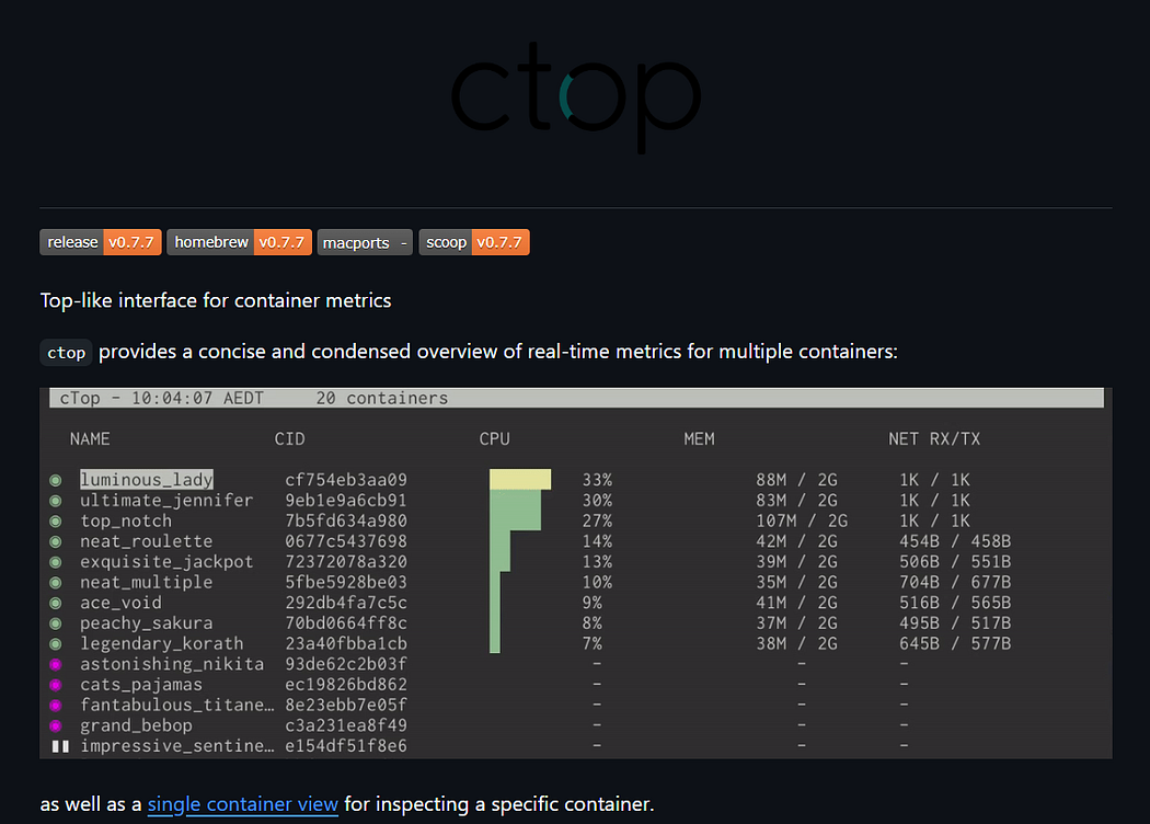 8. Ctop — Top for Containers